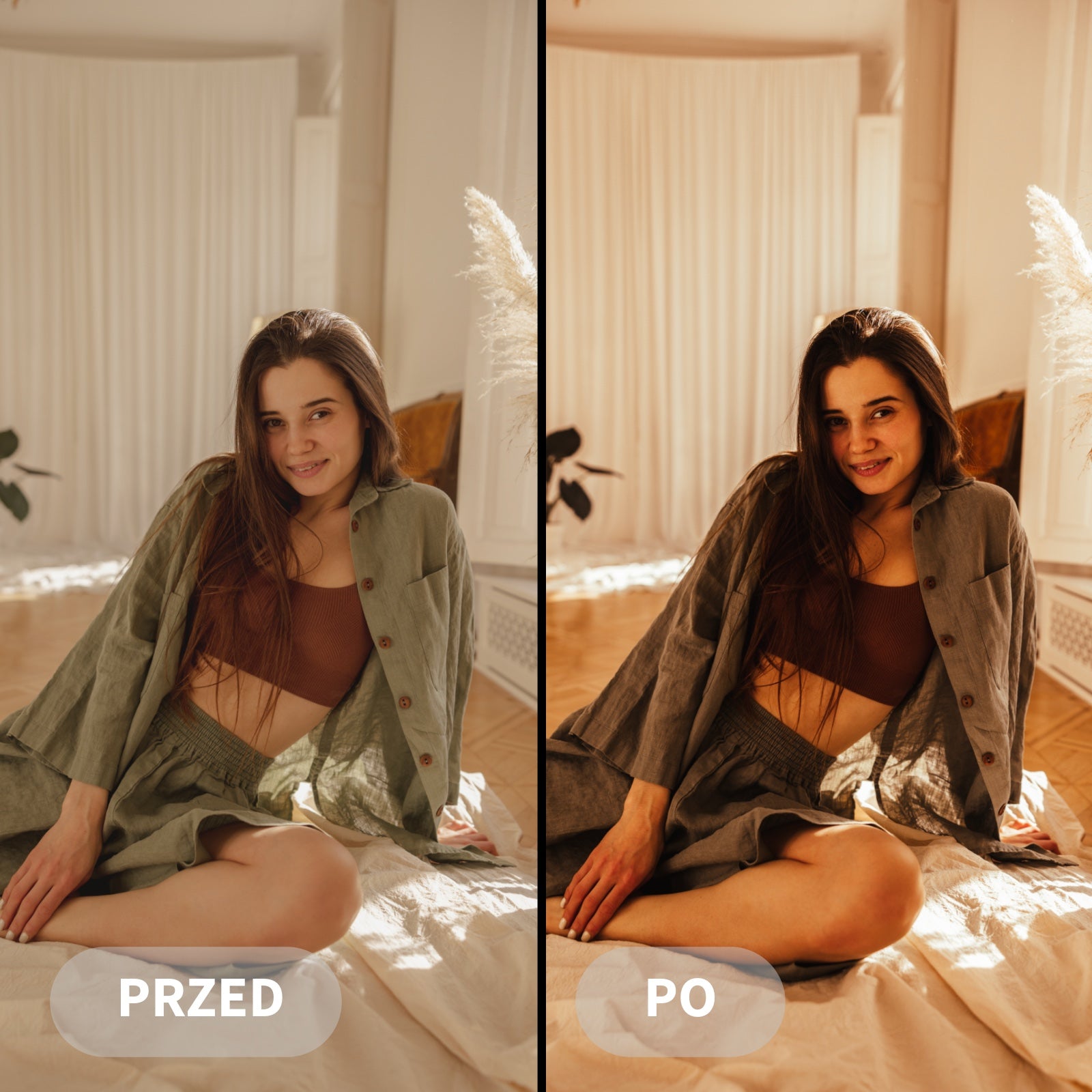 Preset Coffee wydobywa ciepłe brązy, delikatne złote refleksy i miękkie światło, nadając zdjęciom przyjemną głębię i naturalny kontrast.