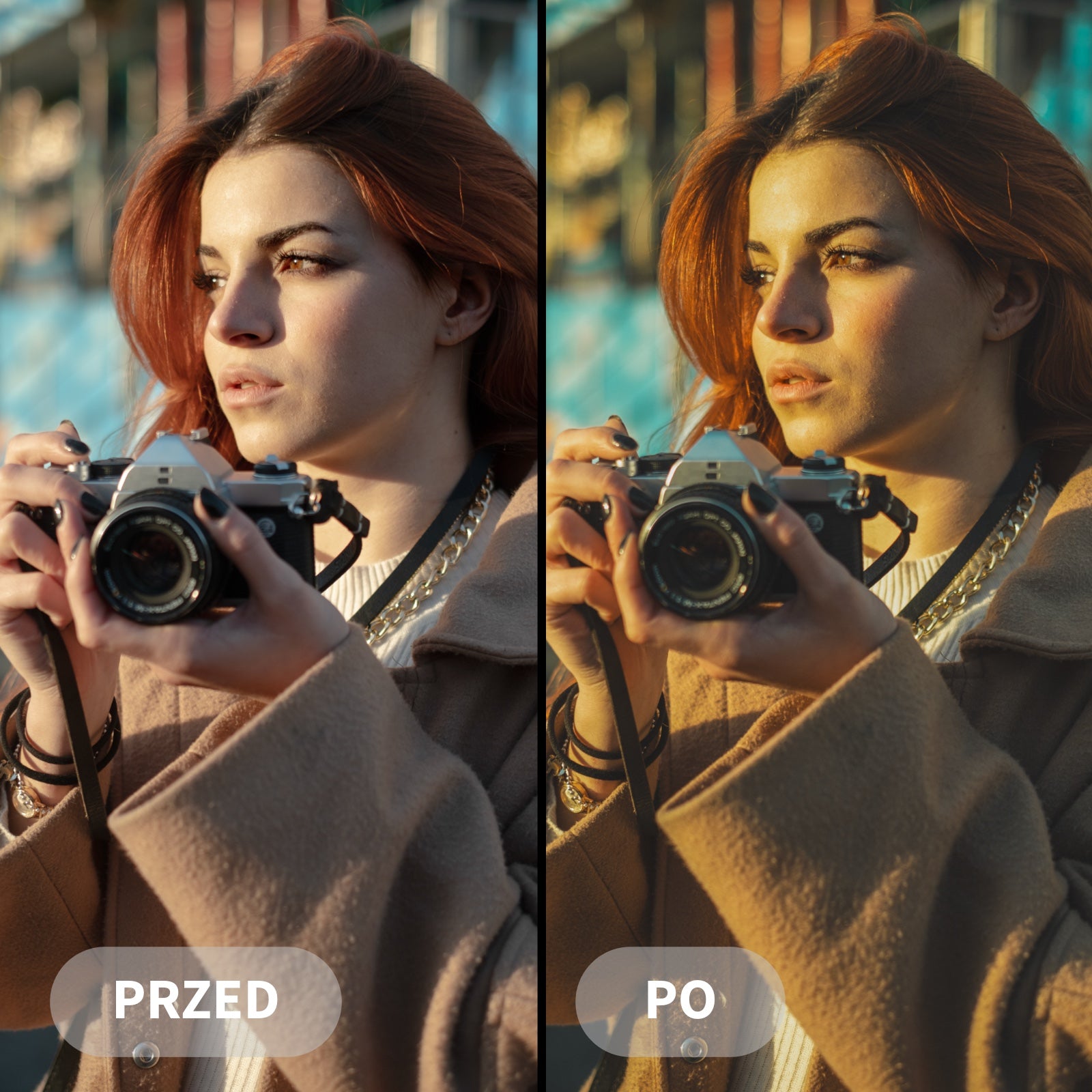 Preset Retro Film delikatnie zmniejsza nasycenie niektórych kolorów, wzmacnia kontrast i dodaje ciepłych lub chłodnych tonów, charakterystycznych dla starych klisz fotograficznych.