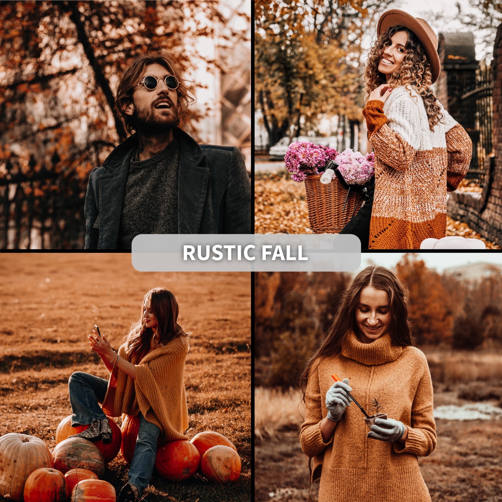 Preset Rustic Fall podbija ciepłe odcienie pomarańczy, brązu i złota, delikatnie przyciemnia kadry i wzmacnia kontrast, nadając zdjęciom głębi i przytulnej atmosfery.